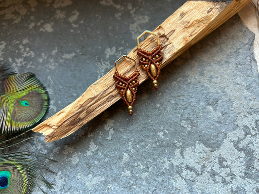 Ohrringe ‚Aenya‘ Makramee Tigerauge Schmuck