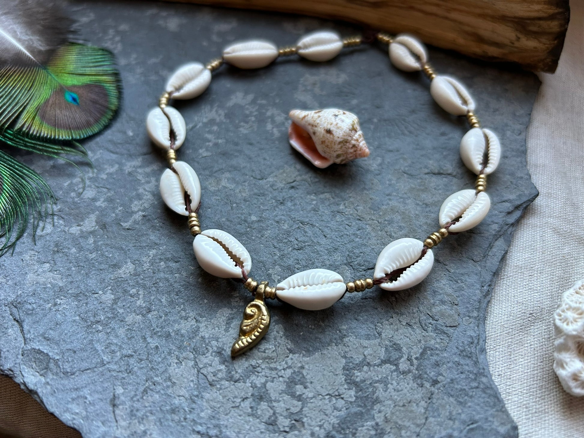 • Handgefertigte Ketten mit echten Kauri-Muscheln.