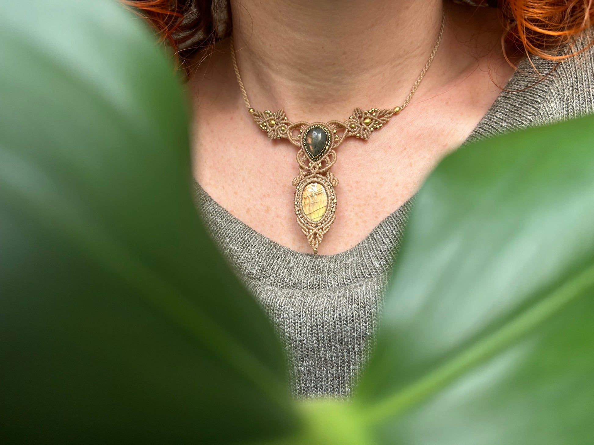 Licht der Wandlung – Makramee-Kette mit Labradorit