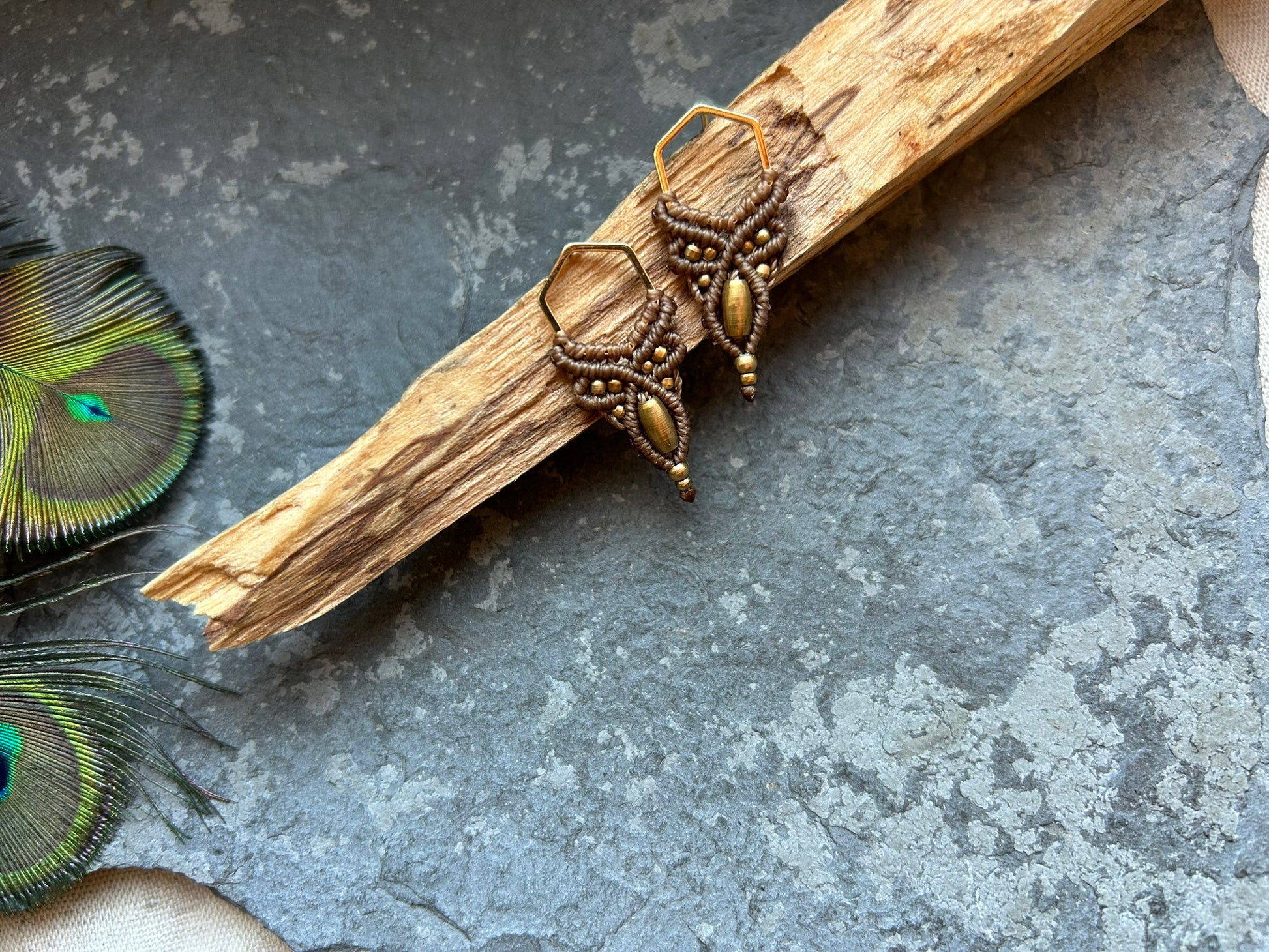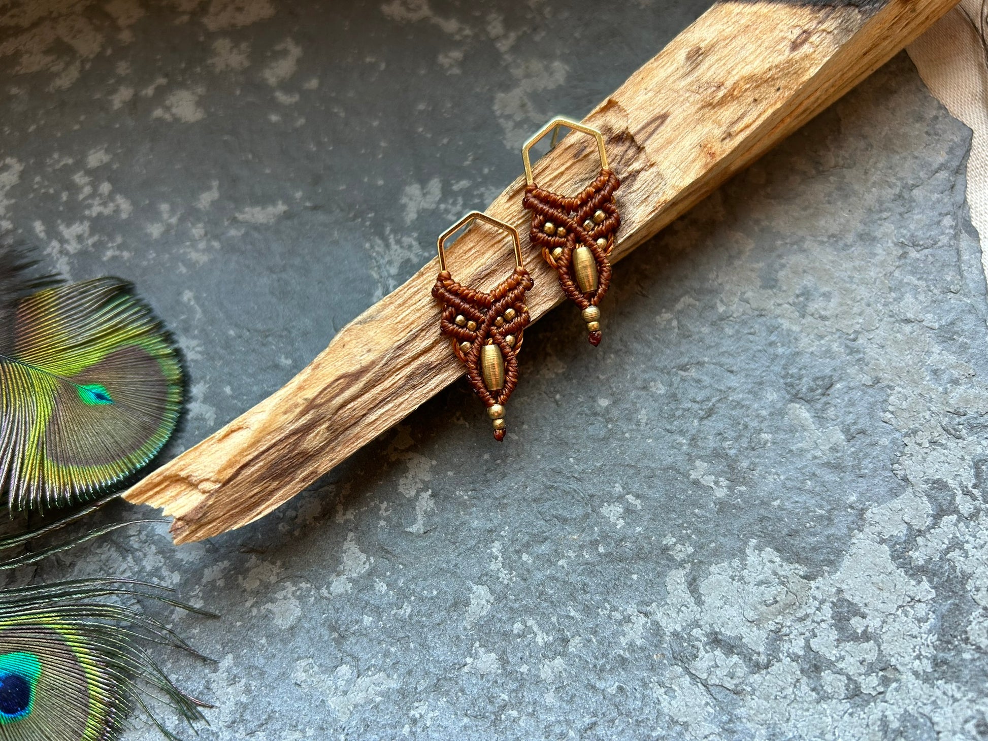 Sanfte Harmonie ‚Alvea‘ - Makramee Ohrstecker im Waben Design