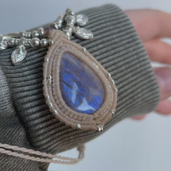 ‚Selari’ Makramee Kette mit Belmorit/Neusilber